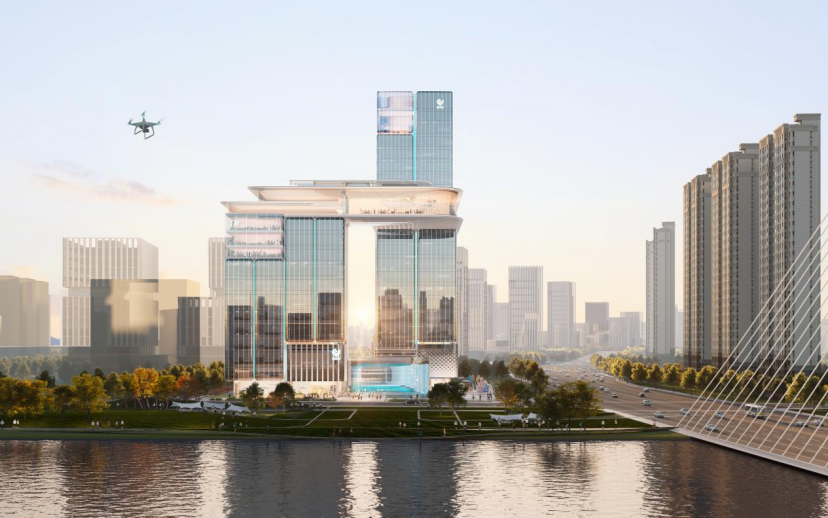 項目塑造了“枕河望江·數智云窗”的建筑形態,通過空中連廊、共享邊庭、云端會客廳等設計,實現建筑與自然景觀的無界融合,成為杭州錢江新城二期濱水金融總部標桿,打造都市活力新地標,建成后將為錢江新城二期產城融合升級注入新動能。